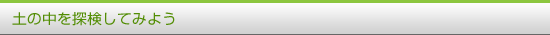 探検に先立ち、土の全体をながめ、つぎに土の中の細かな様子を観察します。最後に、実験で土の中の不思議を探検します。